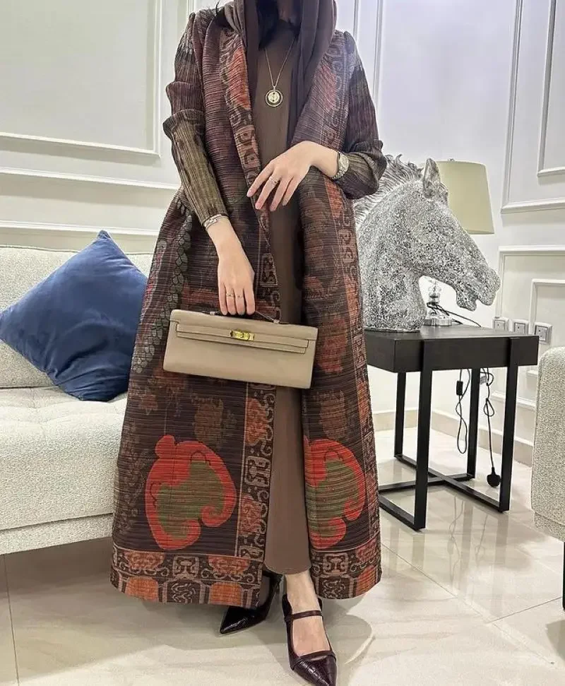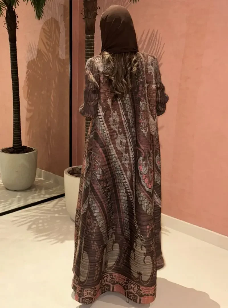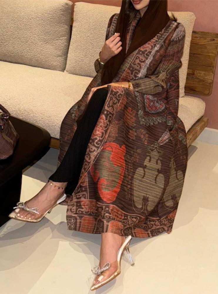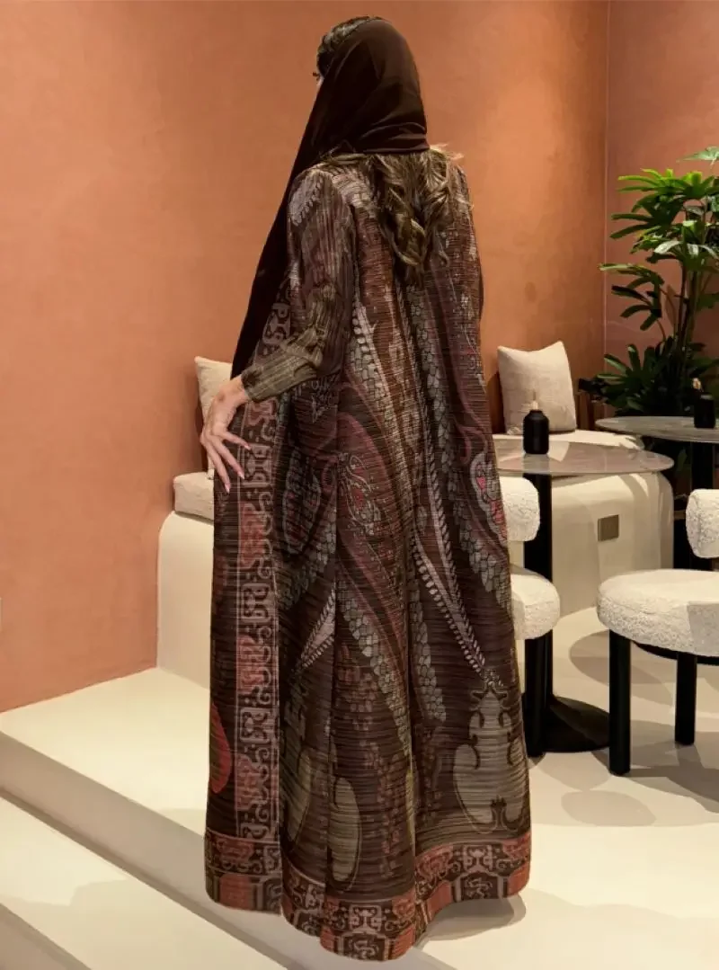 قماش ناعم مطعج تكسيرات صغيره..مع لفة انيقة من الرقبة بتفاصيل انثوية