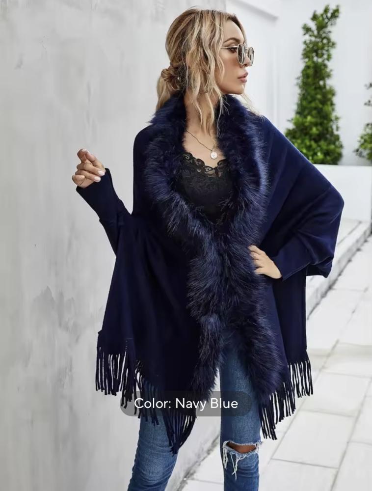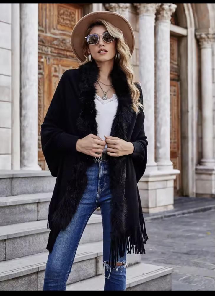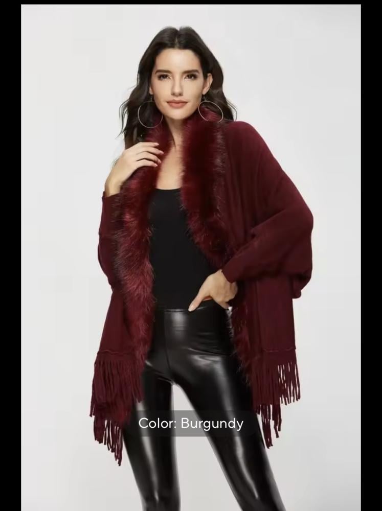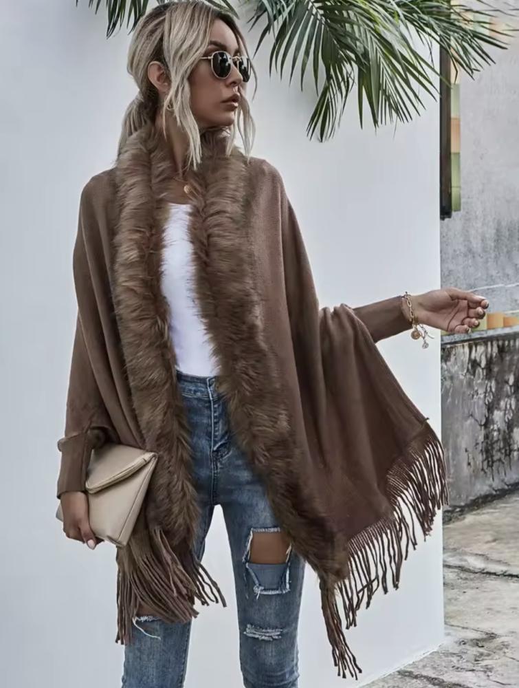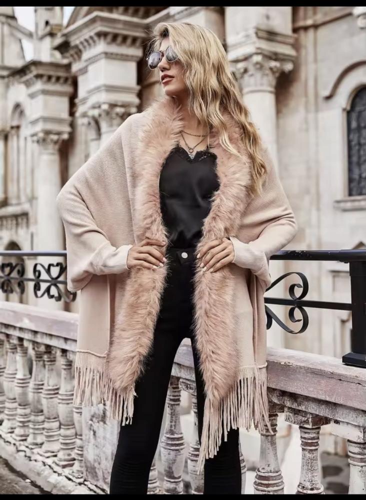 شال نسائي فرو من خُطى بتصميم شتوي أنيق، تجمع بين الدفء والأناقة. تتميز بأكمام جناح الفراشة وفرو تضيف حركة وحيوية، مع خيارات ألوان متعددة تناسب مختلف الأذواق. مناسبة للسهرات والأنشطة اليومية في فصل الشتاء.