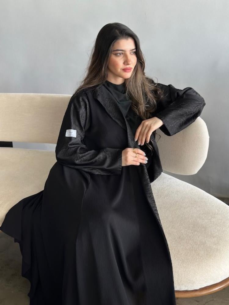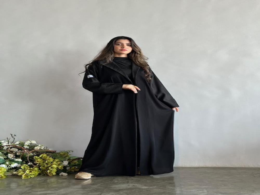 - تفاصيل الأكمام والياقة تضفي لمسة من الفخامة على العباية.
